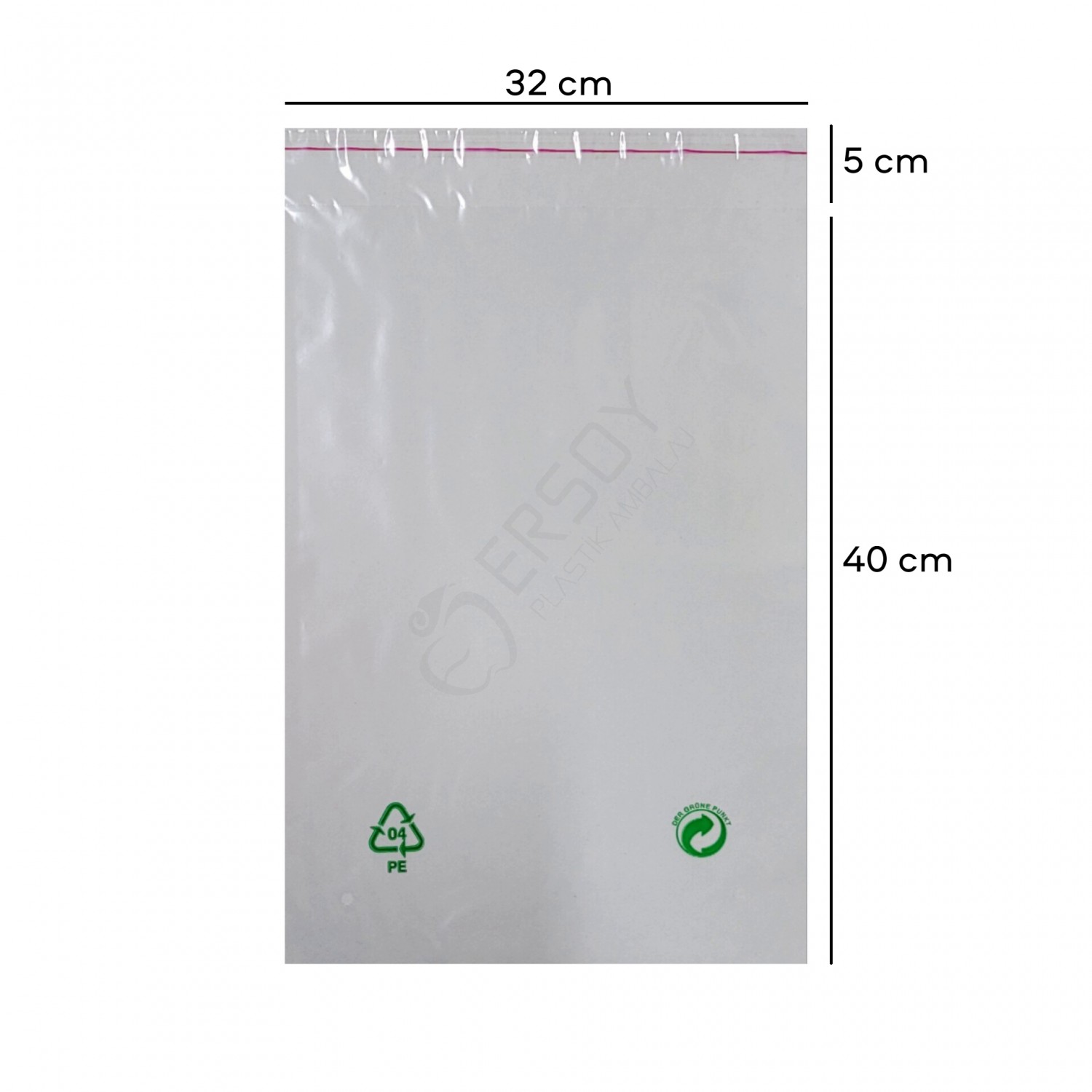 32x40+5 cm kendinden bantlı hava delikli dönüşüm işaretli naylon torba ile ürünlerinizi düzenli, hijyenik ve profesyonel şekilde paketleyebilirsiniz.